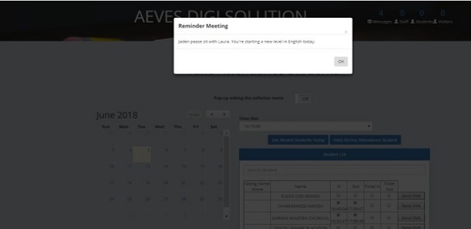 Create quick meeting messages for students you need to observe or have a discussion with. Meeting notes which pop up when student is signed in to class.
