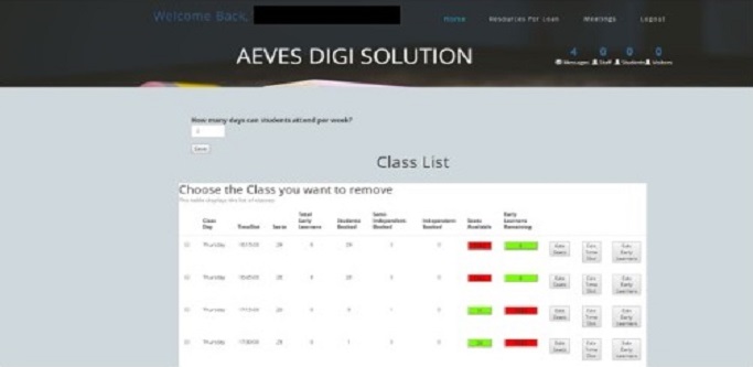 Activities of past classes can be seen at a glance. See current class attendance, absent students, add/remove students and staff.